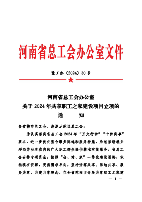 近日,河南省總工會(huì)發(fā)布《關(guān)于2024年共享職工之家建設(shè)項(xiàng)目立項(xiàng)的通知》,決定對(duì)城發(fā)金岱智慧產(chǎn)業(yè)園共享職工之家等32個(gè)共享職工之家建設(shè)項(xiàng)目進(jìn)行立項(xiàng),并對(duì)城發(fā)金岱智慧產(chǎn)業(yè)園共享職工之家給予資金補(bǔ)助,鄭州市僅有三家職工之家獲得立項(xiàng),這是城發(fā)金岱智慧產(chǎn)業(yè)園共享職工之家建設(shè)運(yùn)營(yíng)后取得的第一份殊榮。
